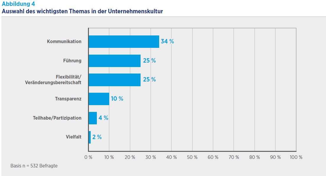 Bei haufe.de wird die Studie besprochen mit der Aussage, die Unternehmenskultur in Deutschland sei in vielen Fällen noch nicht bereit für die mentale Verankerung des digitalen Wandels. Diese Aussage legt nahe, dass die Kultur eine Voraussetzung für das Gelingen sei. Bei Alain Veuve klingt es dagegen eher so, als ziehe eine agile Vorgehensweise zum Erreichen des angestrebten Wandels diese Kultur nach sich.