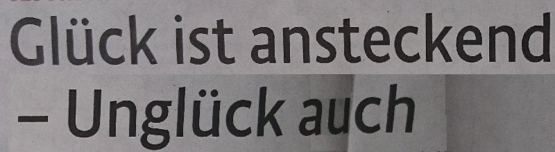 Die Wissenschaft geht davon aus, dass Glück ebenso wie Unglück ansteckend ist, so führt das Marie-Anne Schlolaut im Kölner Stadt-Anzeiger aus. Wer etwa aufgrund seiner Umstände, Zwänge und seines Berufs „maulig“ ist, zieht damit auch andere herunter, heißt es da. Zitiert wird Maike Luhmann, Glücksforscherin der Uni Bochum: