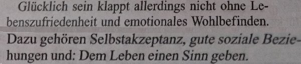 Insofern hat (Zustands-)Glück nicht unbedingt etwas mit Intelligenz zu tun, wie es in dem Zeitungsbeitrag weiter heißt, durchaus aber etwas mit Bildung. Denn dadurch, so die Glücksforscherin, kommt gewöhnlich ein höheres Einkommen und eine höhere Lebenszufriedenheit zustande. Dabei gilt ihr zufolge zwar immer noch die Regel: Geld alleine macht nicht glücklich“, jedoch auch mit dem Zusatz: „Es vereinfacht aber manches.“
